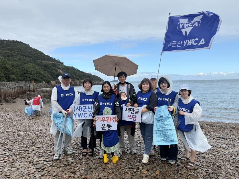 군산YWCA는 군산YMCA, 웰니스평생봉사단 등 지역 단체와 함께 9월 13일(토) 군산 신시도 몽돌 해수욕장에서 해양 환경정화 행사 '새만금 쓰담' 캠페인을 진행하였습니다.